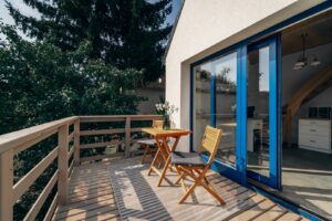 V útulném domečku vám bude nadmíru dobře. Je sice malý, ale pro dva je tak akorát. V přízemí si uvaříte něco dobrého na zub – vychutnat si to můžete ideálně na terásce, která je na obývací prostor napojená.